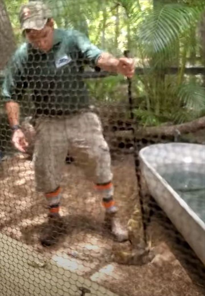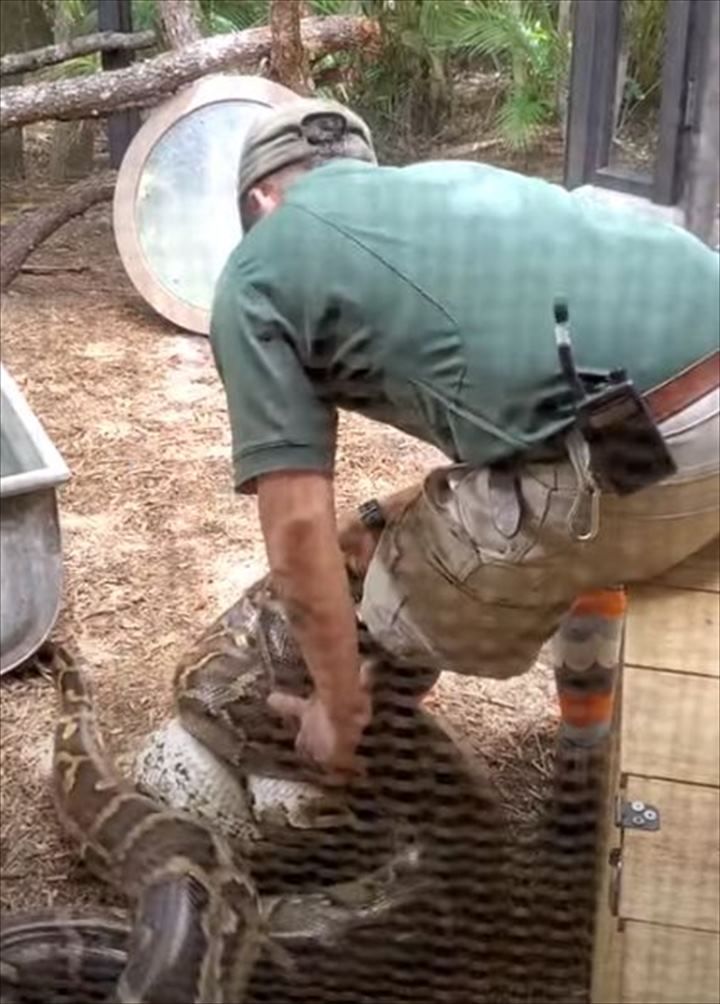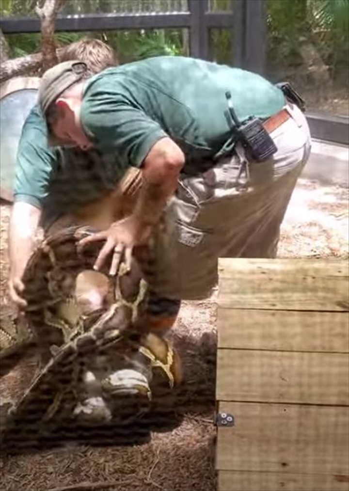 3. さすがプロ!大蛇が飼育員の足に絡まって緊急事態?そんな状況でも飼育員さんは冷静な上にお客さんに解説もしていました!