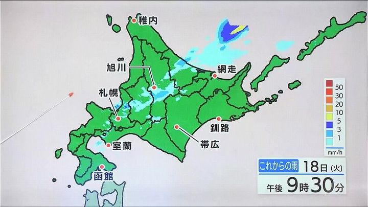 気温が上がって、きょうも雨雲が発達しています。この時間も後志や上川、オホーツク海側を中心に雨です。