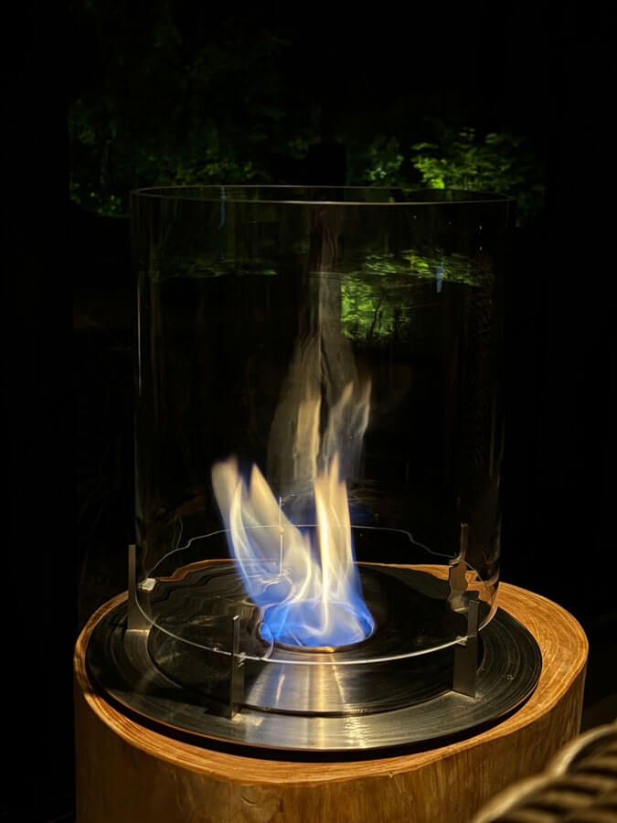 また、各部屋に環境に優しいバイオエタノール暖炉が用意されており、ゆったりと揺れる炎を眺めながら、夜の森を見てリラックスする時間はまさに至福の時でした。