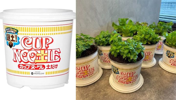 「CUP NOO土LE  カップヌードル 土だけ」は、「カップヌードル」の日清食品株式会社とガーデニングに最適な園芸用の土・培養土・腐葉土の製造と開発、販売を行っている株式会社プロトリーフとのコラボ商品。