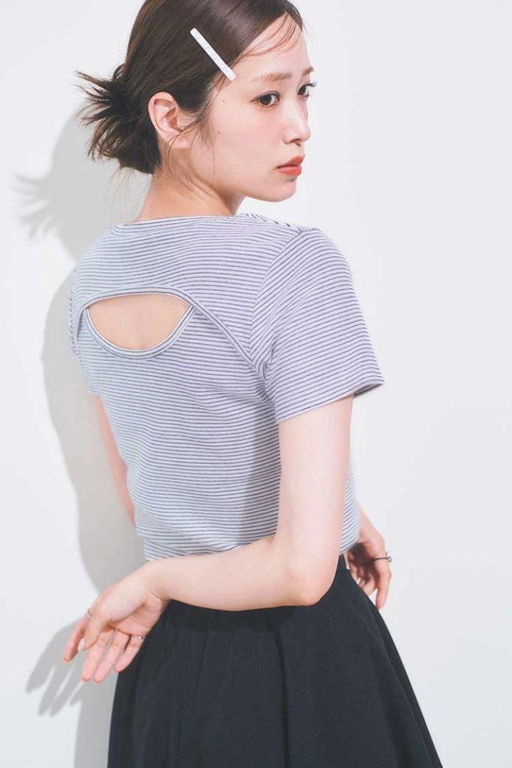 カジュアルなボーダーも、後ろ姿はちょいセクシーなギャップ魅せ。モノトーンコーデにもぴったり♡
