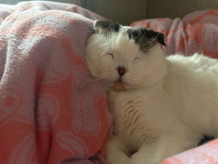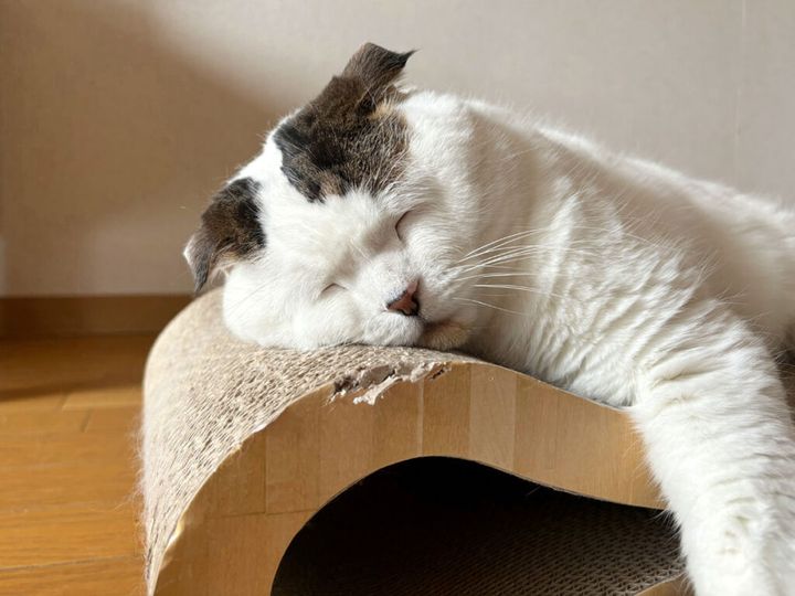 生まれは京都、育ちは大阪の6歳オス。いなほという名前は、飼い主が大好きなスピッツの曲名から。コーヒーこぼしちゃったみたいなアゴの茶色の斑点が、オレのチャームポイント。飼い主さんには、かなり用心深く繊細なタイプと言われてて、インターホンの音が鳴ると雲隠れし、ティッシュを抜く音にさえびっくりして跳び上がってしまうほど。本誌2021年7月号にて、わたなべとしふみさんによるいなほの紹介イラストを掲載しています。
