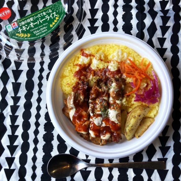 大きなチキンが印象的な「チキンオーバーライス」は、ニューヨークで人気のあるストリートフードです。イエローライスに、チリパウダーやオレガノといったスパイスで下味をつけて焼いたチキンが豪快にトッピングしてあります。
