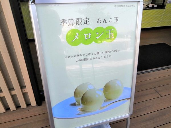 通常の6種類(小豆、白いんげん、抹茶、いちご、みかん、珈琲)に加えて、この日は季節限定のメロン玉がありました。