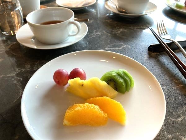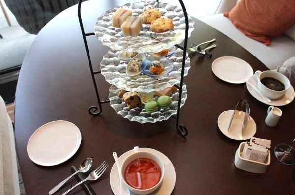 美味しいシャンパンを飲みながらチェックイン手続きを済ませ、その後はアフタヌーンティーを。