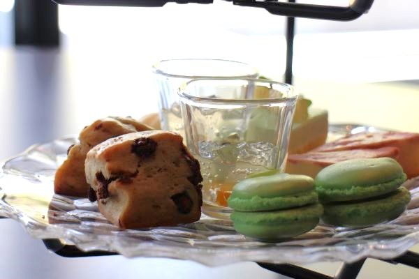 スコーン、マカロン、ゼリーに奥にはケーキが2種類もあり、結構お腹いっぱいに!