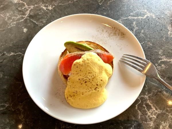 卵料理からエッグベネディクト 八幡平サーモンマリネとアボカド。