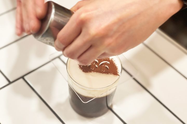 「cafe486」では、仕上げにクリームの上にココアパウダーをオン。真っ白なクリームに浮かびあがった「486」のロゴがおしゃれで、写真映え間違いなしです。