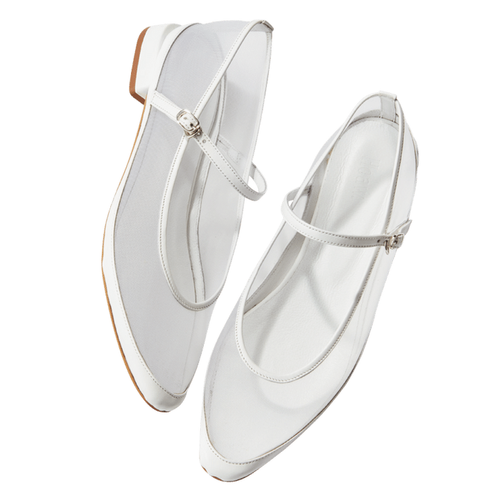「ポインテテッドトゥのメリージェーンは、透けてる感じとか、真っ白のところとか、全てがパーフェクトに可愛い! 足元を変えるだけで、いつものデニムも新鮮な気持ちではけます」