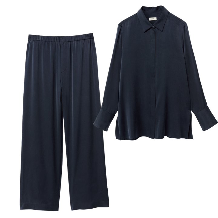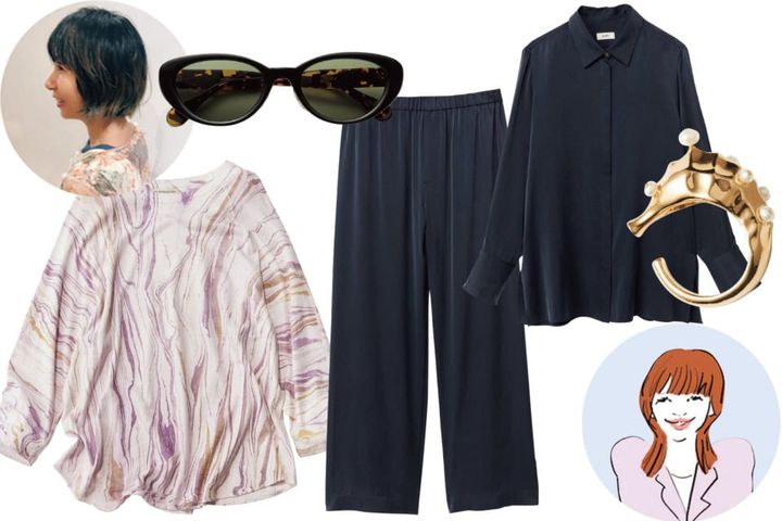 シルクシャツ¥38,500、シルクパンツ¥29,700(共にロペ/ジュンカスタマーセンター)