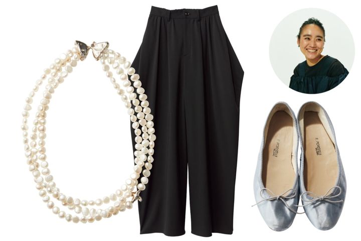 「あっこちゃん(木津明子さん)のコラボシリーズは毎回楽しみにしています。このバレエシューズは初期のコラボをアップデートした新色。外反母趾の人でも足が痛くならないのがポイント」