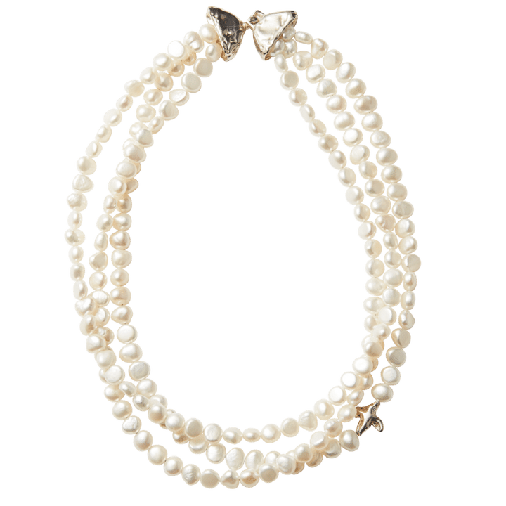 「大好きなパールアクセ。ちょうどカジュアルに着けられる3連のネックレスを探していたところ、アローズの展示会で発見! 即オーダーしました(笑)。さり気なく鳥がいるのもツボです」