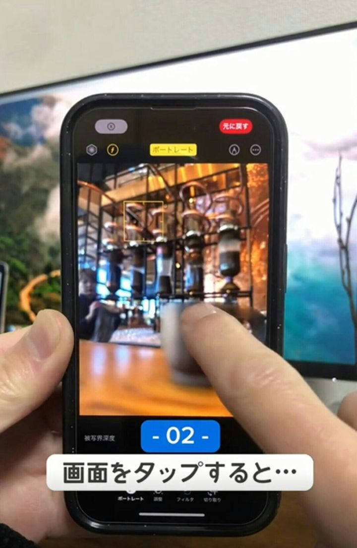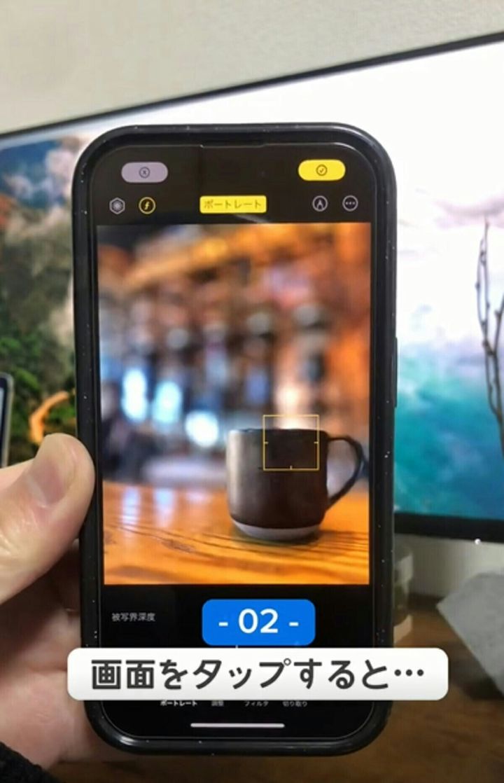 そして、ピントを合わせたい対象物に合わせて画面上をタップします。