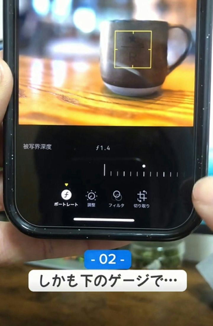 さらに、画面下のゲージで調整すれば、ぼかし具合も思いのままに変えることができます。