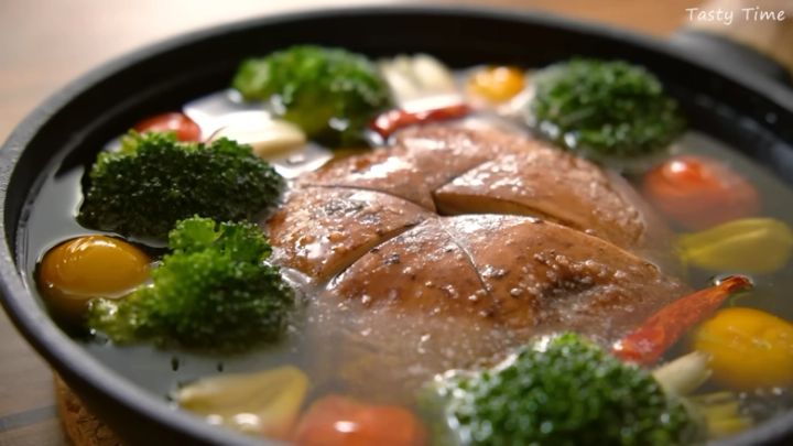 TastyTimeさんおすすめの食べ方はふたつ。1品目はポータベラマッシュルームの丸ごとアヒージョです。野菜・ニンニク・唐辛子・オリーブオイル・塩で調理すると、簡単にアヒージョが完成!