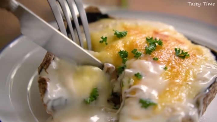 2品目は、ポータベラマッシュルームのグラタン。マッシュルームにホワイトソースとチーズをたっぷり詰め、トースターで15~20分ほど焼くと、濃厚なグラタンができあがります。