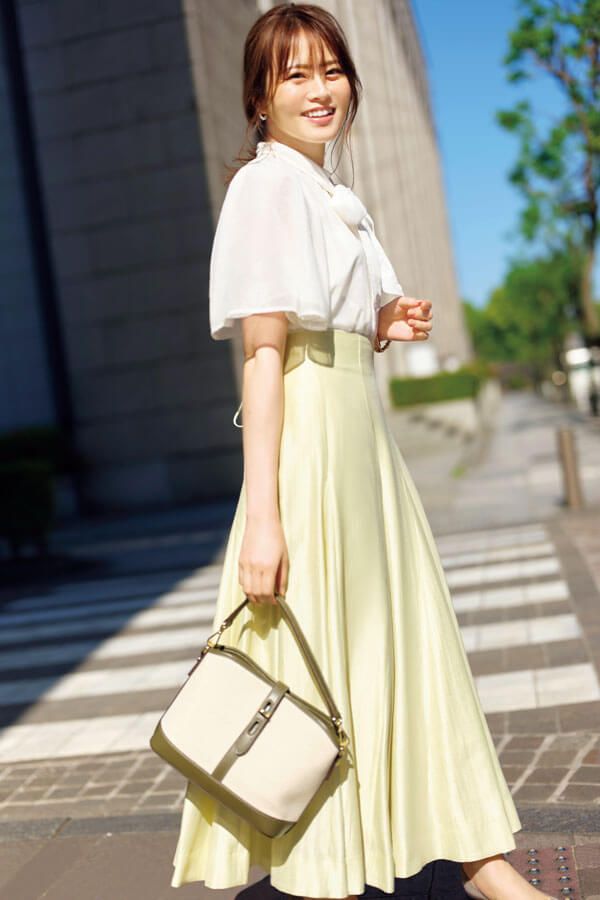 白×イエローでフェミニン♡好印象な通勤コーデ