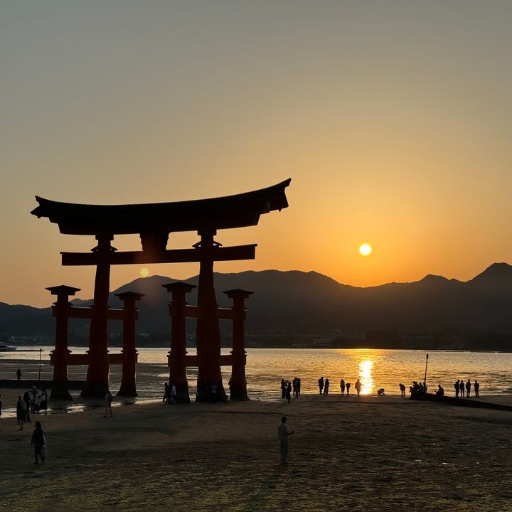 そして、到着したタイミングがよく、厳島神社✖️夕日の最高のコラボに思わず見惚れてしまいました〜!