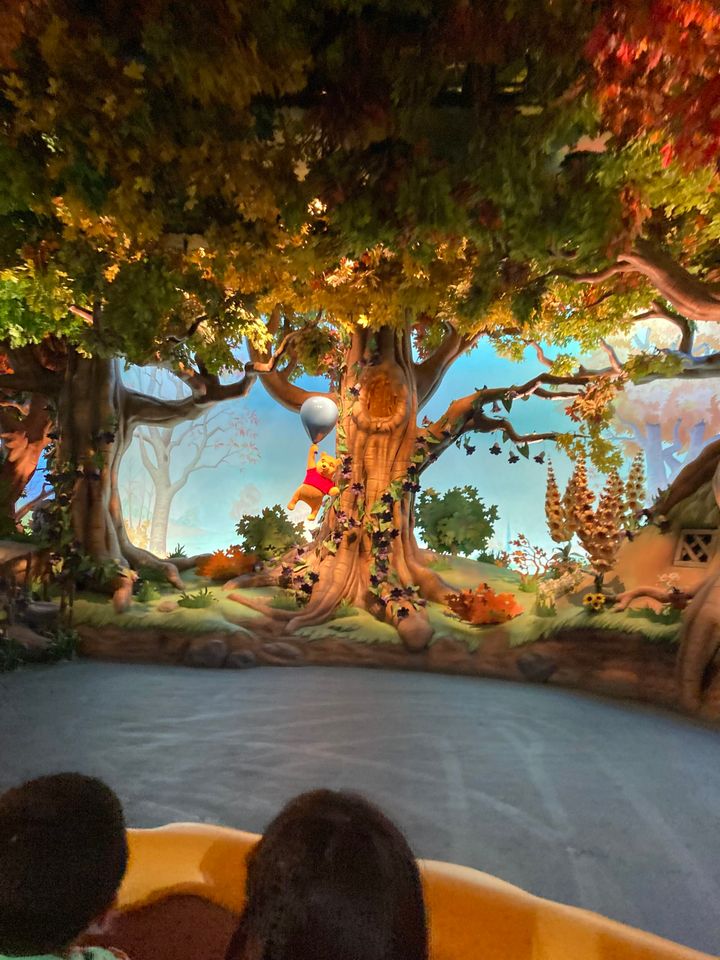 パレード鑑賞を終え、みんな疲労が見えてきたので、アドベンチャーランドでうきわまんを食べながら一休みしていました。その後、「プーさんのハニーハント」のプライオリティパスの時間が近づいていたので、再び右側経由でファンタジーランド方面へ行くことに。次女は、もうさっきの2度の迷子は忘れています。私ももちろん忘れています。