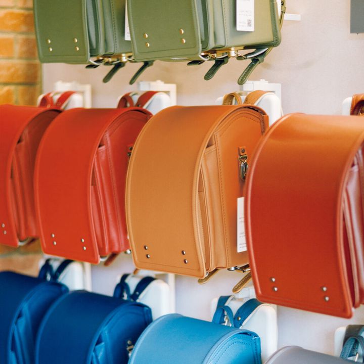 ランドセルが素材やカラー違いでズラリと並ぶ店内。