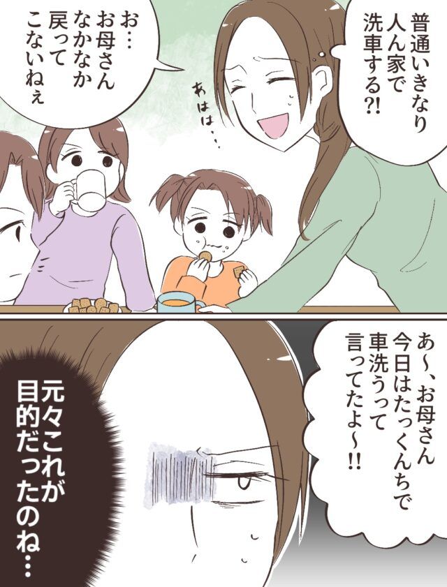 [3-2]義姉訪問の目的が判明・・自分の車を勝手に洗車。夫の姉がワガママすぎる|ママ広場マンガ