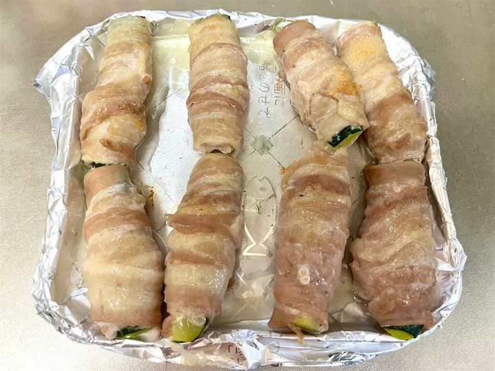 巻く豚肉の量は、長さや薄さによるので調節してくださいね。