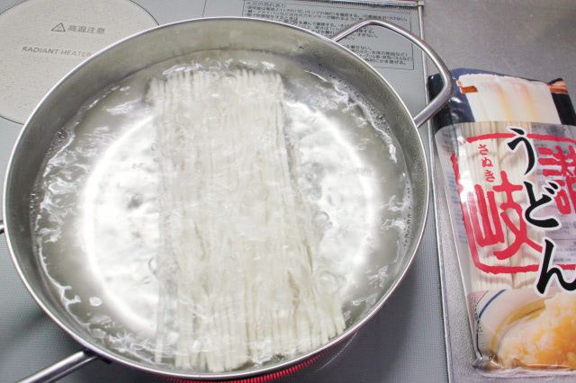 麺はそうめん、ひやむぎ、うどん、中華麺などお好きな麺を茹でて冷たく冷やしてくださいね。今回は乾麺のうどんで「悶絶ウマいめんつゆ」を味わってみます!