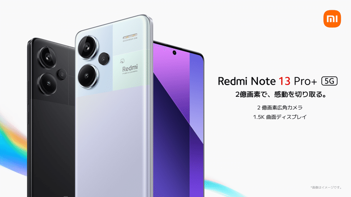 高解像度の2億画素のメインカメラを搭載。美しい背面仕上げと大容量バッテリー搭載「Redmi Note 13 Pro+ 5G」。市場想定価格 :8GB/256GB版 59,800円(税込)、12GB/512GB版 74,800円(税込)