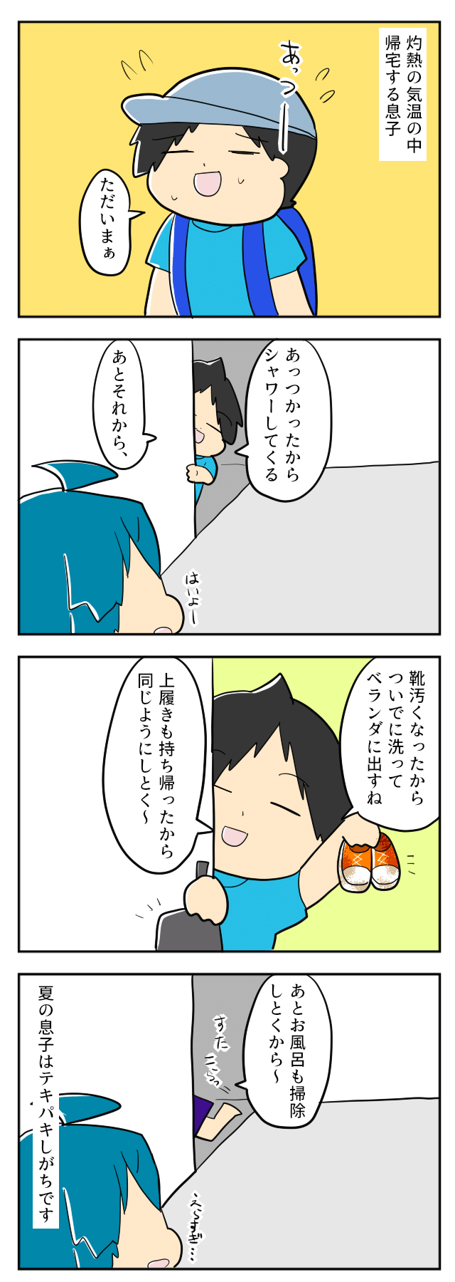 息子曰く「夏は体がベタベタするのが苦手。だから帰ってすぐいつもシャワーにしてる」