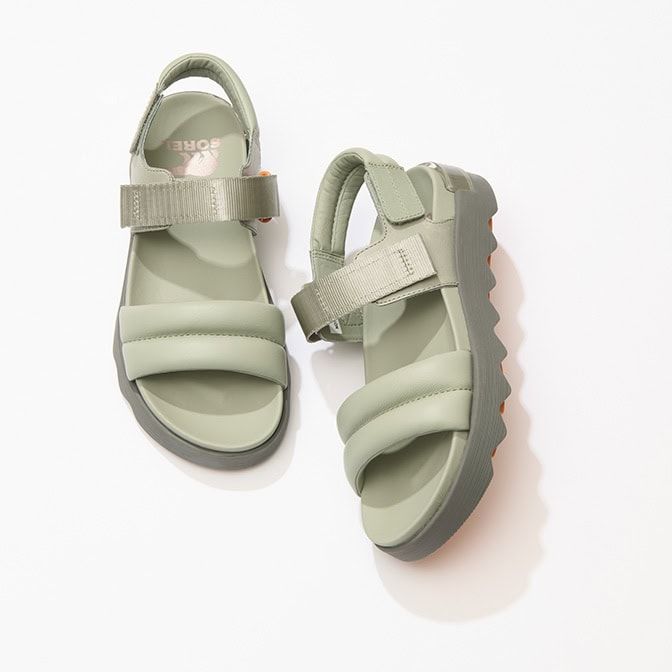 スポサンがますますおしゃれに クッション性があるボリュームソールで、弾むように歩けるのが特徴。上質なシープスキンレザーを使ったビジュアルが、都会でも活躍すること間違いなし。サンダル¥14,850(ソレル/コロンビアスポーツウェアジャパン)