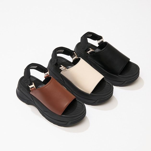 今っぽさのあるボリュームソール 6.5㎝の厚底ソールながら、シャカならではのはき心地。ヒールストラップを取り外してもOKな2WAY仕様。チャンキーサンダル 各¥15,400(シャカ/ブルームーンカンパニー)