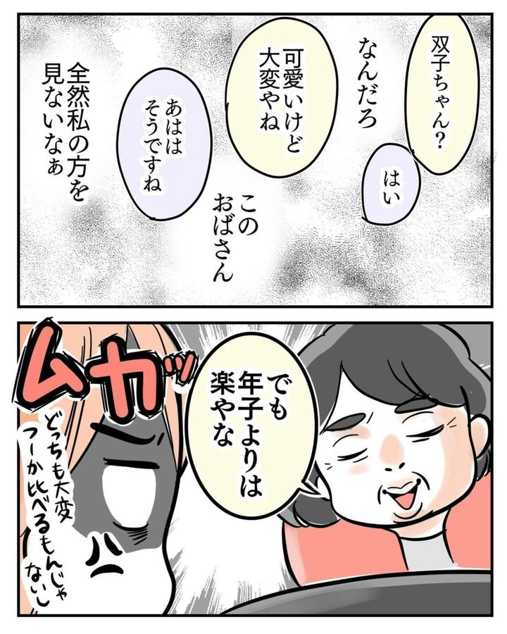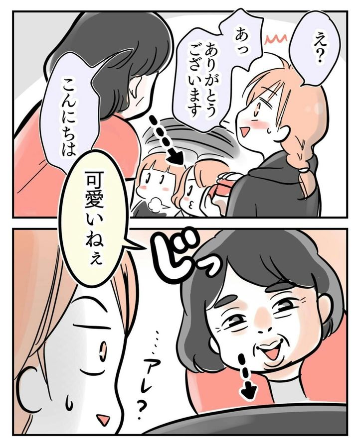 本作では、著者・サヤさんが2歳の双子の子育てをしていたとき、子どもに勝手に触ろうとしてくる女性と遭遇した体験談が描かれています。親が「やめてください」とハッキリと拒絶しても、親を無視した行動をとる女性。話が通じない相手には、恐怖を感じるものです…。