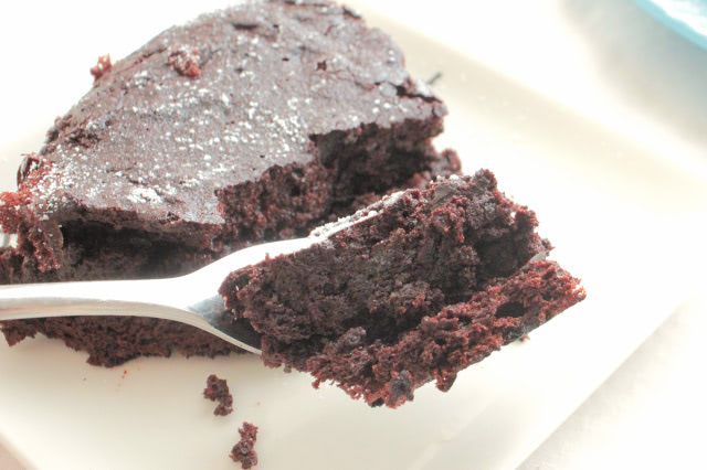 フォークですくってみると、本格的なガトーショコラのような仕上がり。口に含むと、濃厚なチョコレートのような、しっとりとしたおいしさが広がります♪今回は無糖ココアを使ったので、甘さは控えめ。甘すぎず大人っぽい味わいなので、風味付けにラム酒などの洋酒を少し足して作ってもおいしそう。