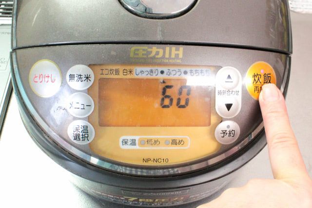 普通モードで加熱します。60分待ちましょう。
