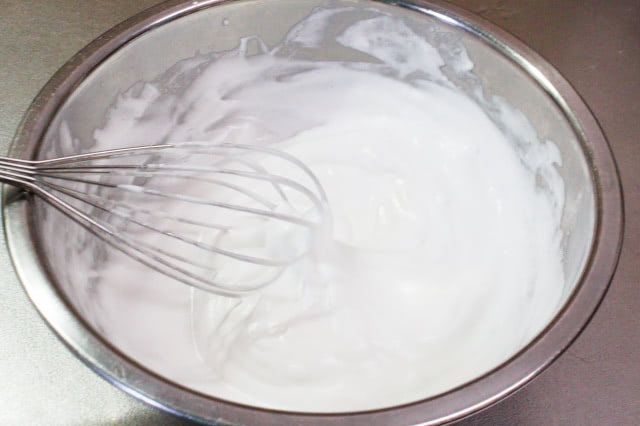 砂糖を一度に加えると卵白が泡立ちにくくなるので、必ず分けて加えてくださいね。