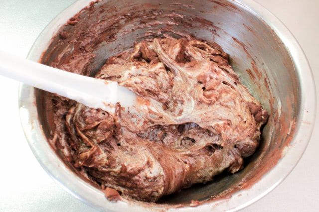 ココアは粒子が細かいので、ふるわずに加えます。今回は無糖のココアを加えましたが、ココアが混ざるとねっとりとした質感に変化しました。