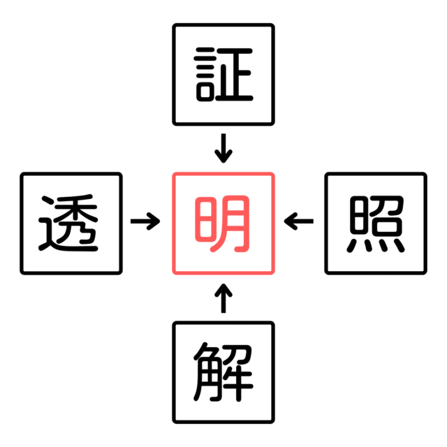 空白に4つの漢字に共通する漢字を入れて、熟語を完成させてみて!