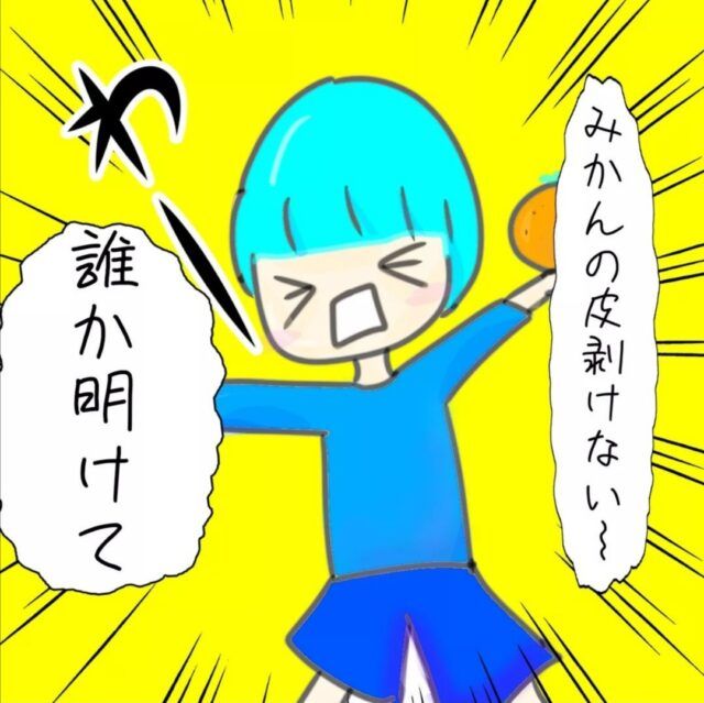 そんなことなるかーい!「あかんわ」みかんが剥けない長男の言い訳に思わずツッコミ|のんママの育児絵日記