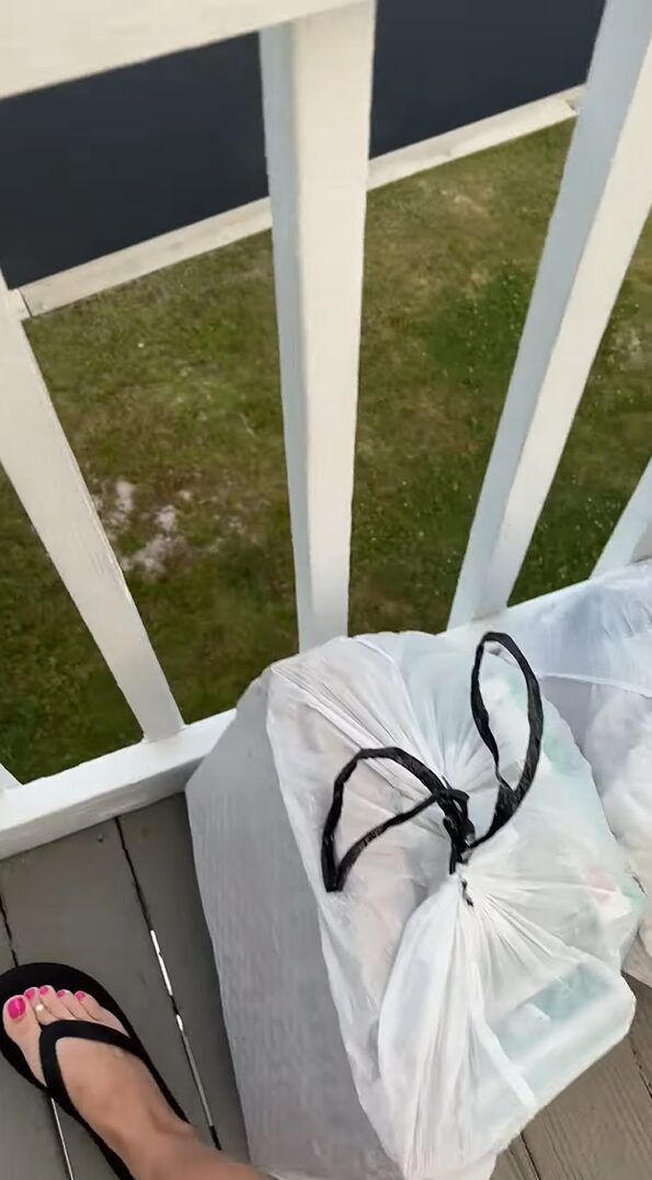 撮影者さんの足元にはゴミ袋が。 ゴミ出しをしないといけないのですが・・・、こちらのお宅は、外にあるゴミ箱まで階段を2フロア分も降りないといけないそうです。