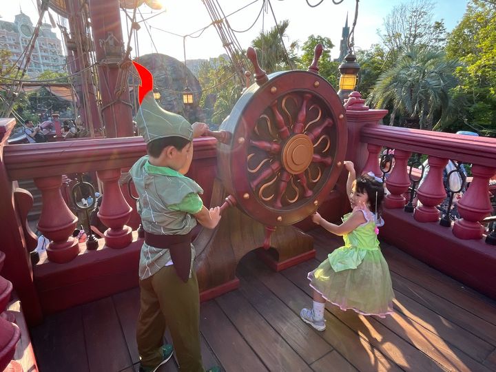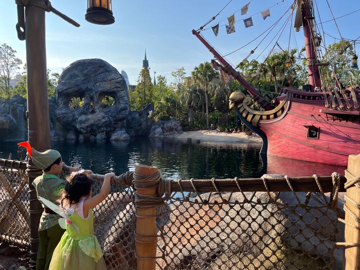 「ピーターパンのネバーランド」では海賊船の中を散策できたり、周辺にも面白い装飾があったりと、子どもはもちろん大人も童心に帰って遊べる仕掛けがいっぱい!
