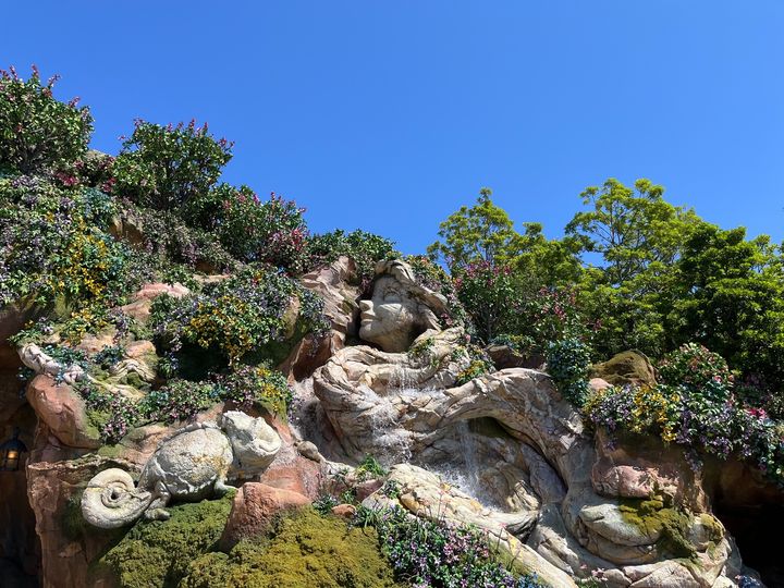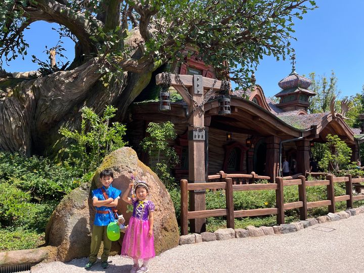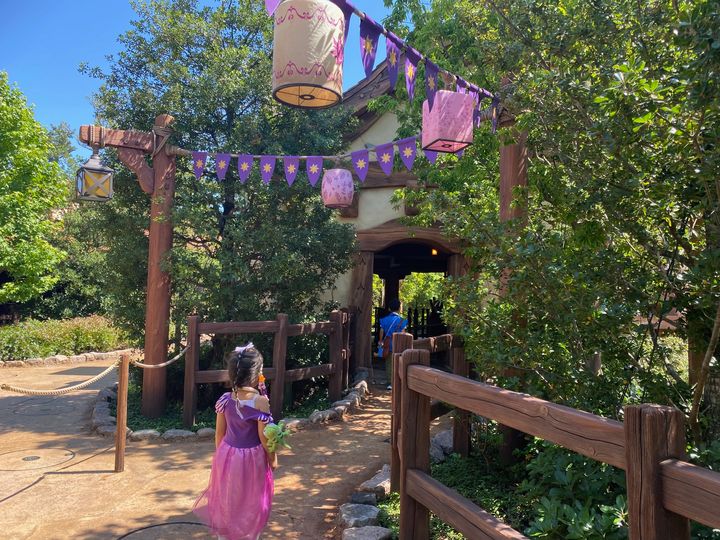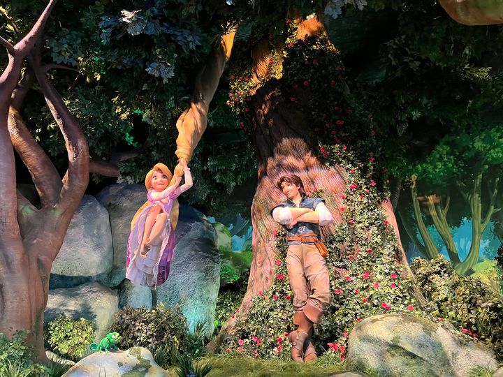 歩いて行くと、目の前には映画『塔の上のラプンツェル』が題材になったエリアは、「ラプンツェルの森」が。