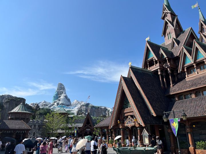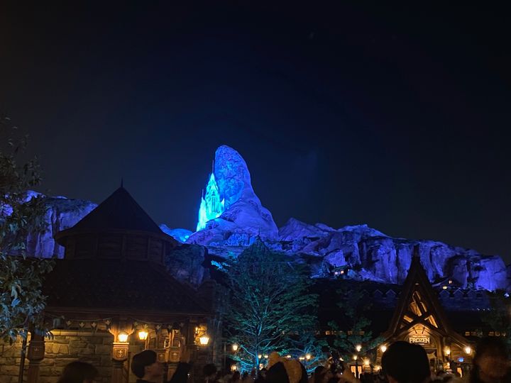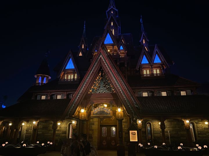 一度、ファンタジースプリングスを出て、他のエリアのアトラクションに乗ったり、ショーを見たりした後、今回のメインイベント『アナと雪の女王』が題材になったエリア「フローズンキングダム」へ。