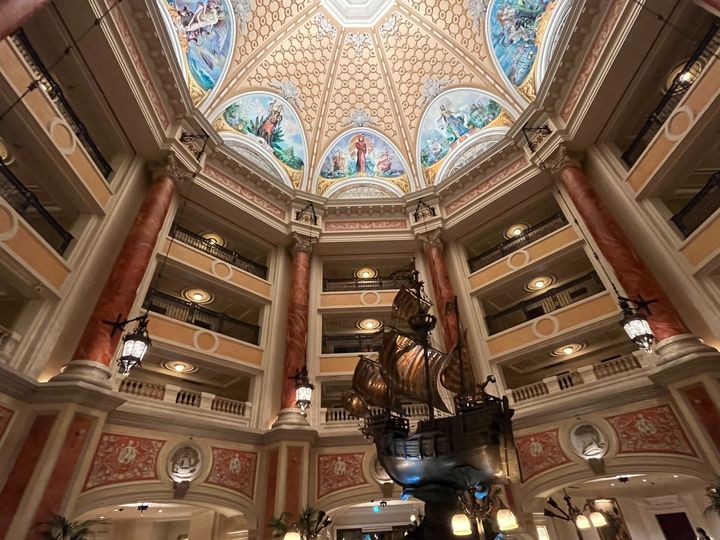 アトラクションの後、ファンタジースプリングスホテルにあるギフトショップに立ち寄り、予約時間となったので、レストラン「スナグリーダックリング」へ。ここは、映画『塔の上のラプンツェル』に出てくる、酒場の荒くれ者たちが集うレストランをテーマにしたレストランです。