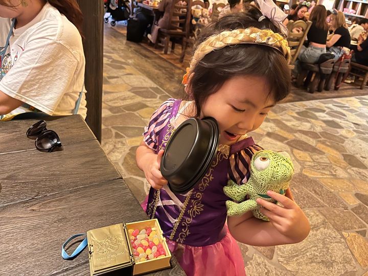 ラプンツェルのフライパンの容器が可愛いスイーツ「スウィーツエバーアフター」は、容器が持ち帰れるので、ラプンツェル好きは必見!食べたその後から遊べます。家に帰ってからも使えそう!