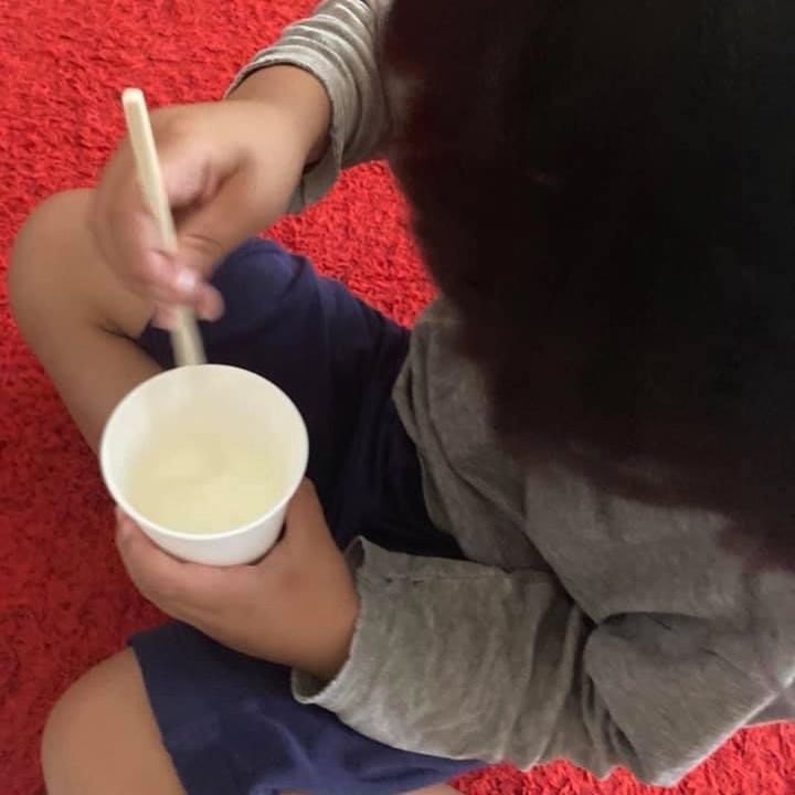 小さめのスプーンですくって画用紙にもこもこ絵の具を落としてもよし
