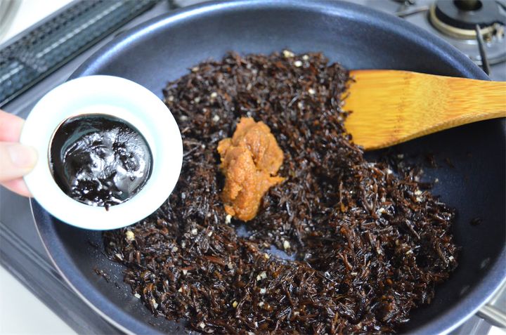 3.1のひじきを入れて炒め、[A]を加え炒め混ぜる。