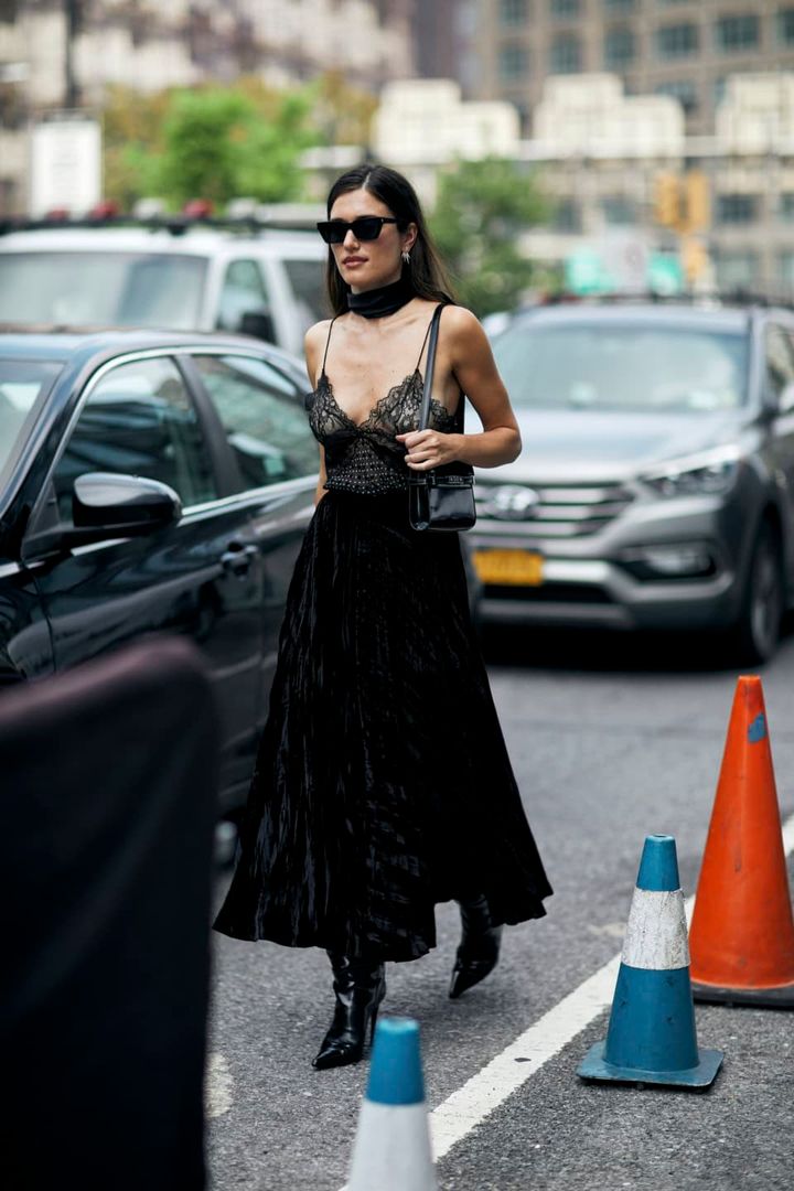 3. 胸元が大きくあいているのがトレンド!海外ファッショニスタが着る暑い日の黒いワンピース8選