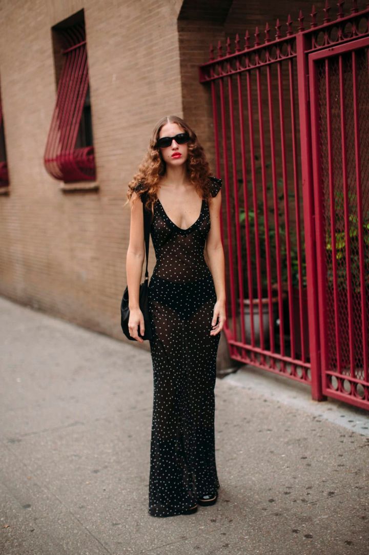 胸元が大きくあいているのがトレンド!海外ファッショニスタが着る暑い日の黒いワンピース8選
