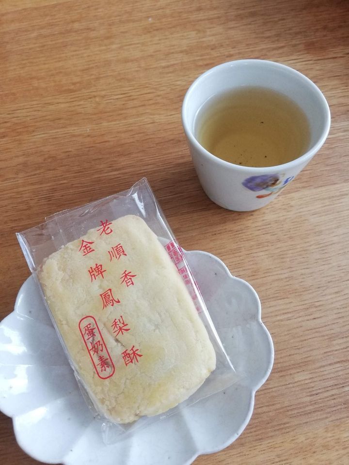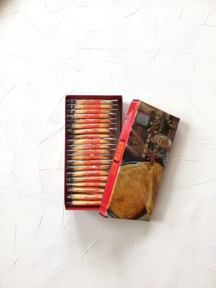 日本統治時代にパイナップルの生産が本格的に始まり、その加工品としてパイナップルケーキが作られて、今では台湾を代表する銘菓になりました。「老順香餅店」の金牌鳳梨酥(ジンパイフォンリース―)の原料はパイナップル、小麦粉、砂糖、バターとごくシンプルで、賞味期限は30日。添加物も入っていない、安心して食べられるやさしいお菓子です。