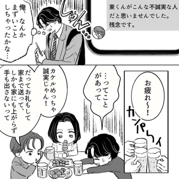 3. 【なぜ?】会社でアプローチしてきた女性とデート!食事後、家まで送る→「不誠実な人で残念」と連絡が来て・・・